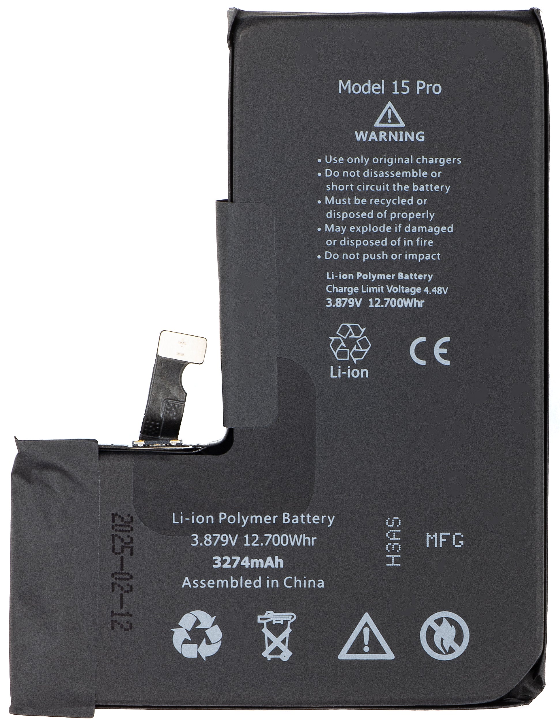 Apple iPhone 15 Pro Battery, with Flex BMS Band integration (no soldering contacts required)