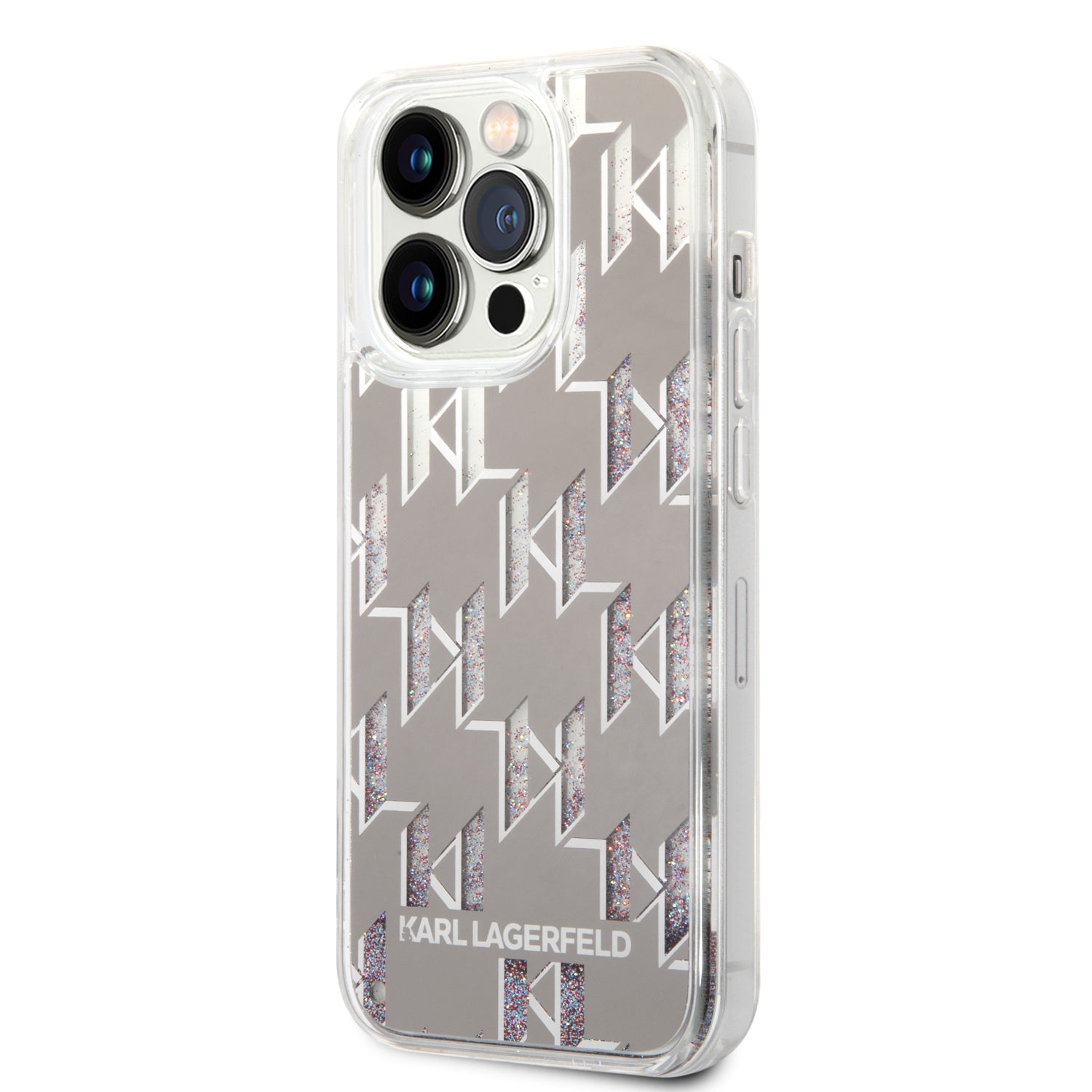 Case for Apple iPhone 14 Pro, Karl Lagerfeld, Liquid Glitter Monogram, Silver