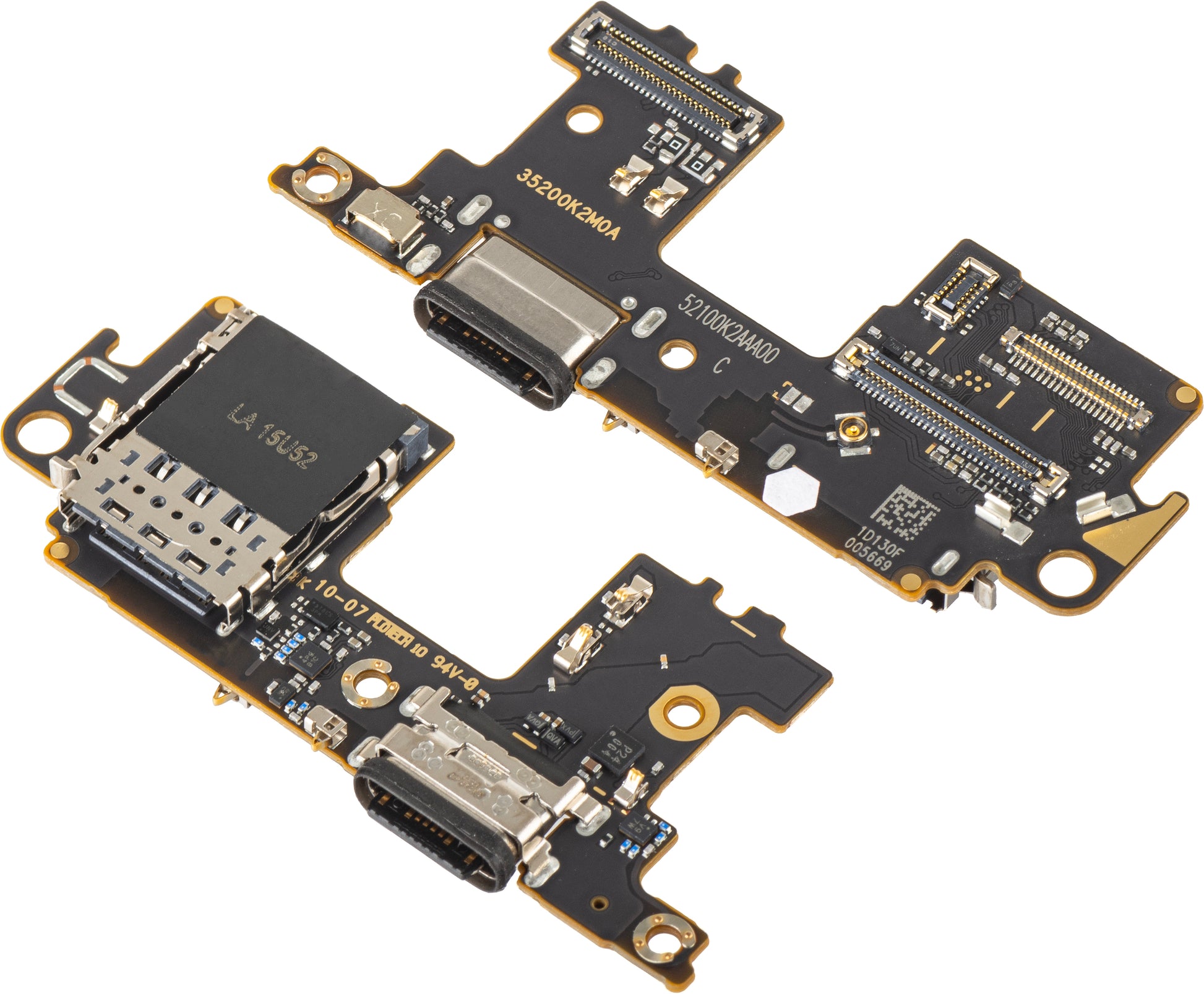 Equipped with charging / data connector, SIM reader module, and microphone.