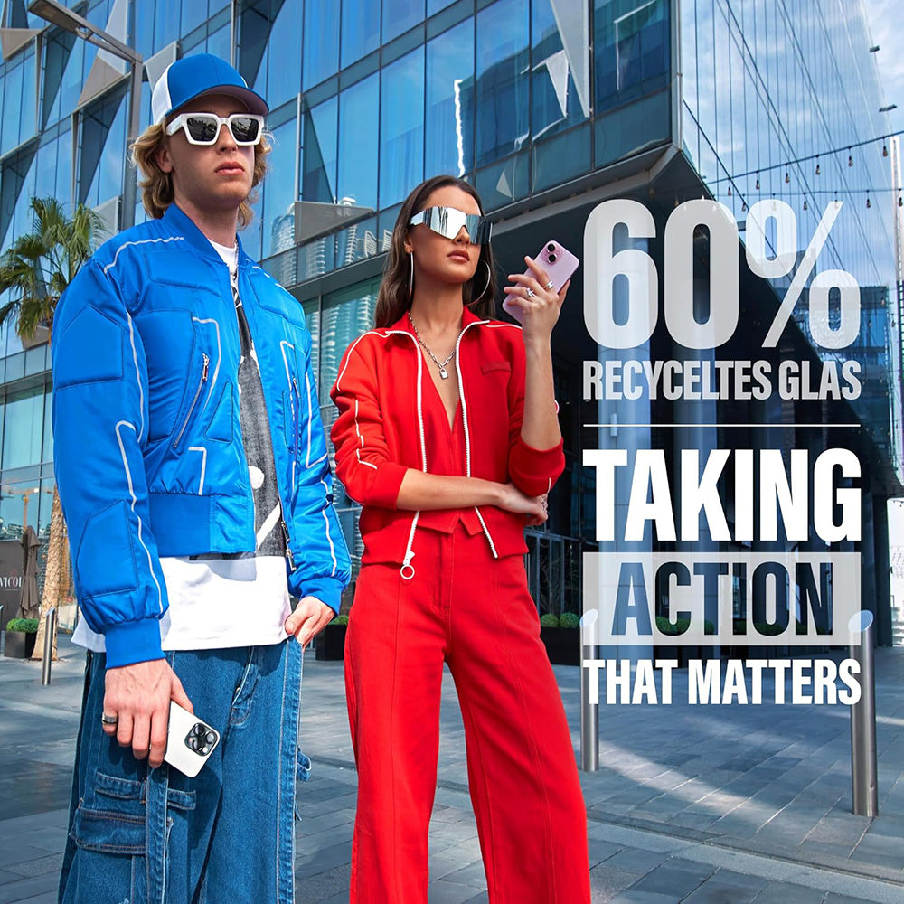• The film is made from approximately 60% recycled glass, processed and purified to maintain the optical properties of virgin glass.