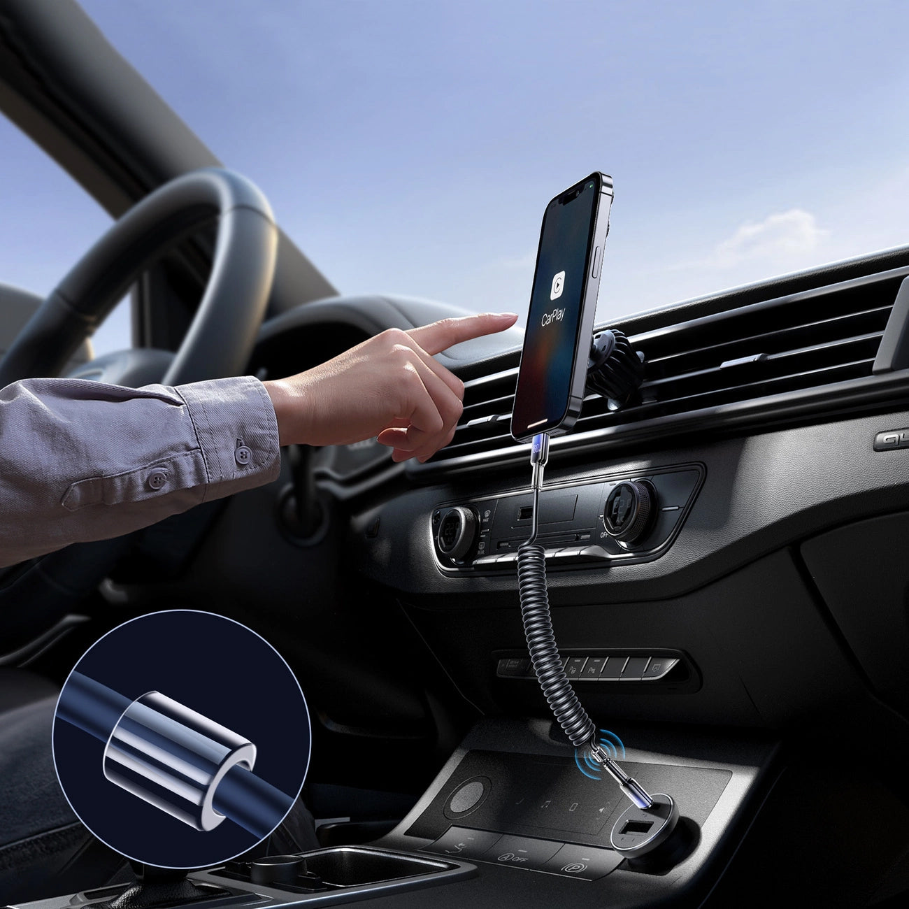 Additionally, it is equipped with a magnetic ring that eliminates electromagnetic interference, ensuring a stable and secure connection, including during the use of CarPlay.